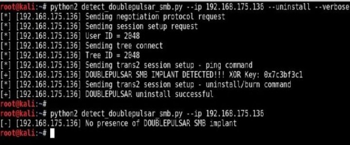 On Tuesday, security firm Countercept released an update to the DoublePulsar detection script it published last week. It now allows people anywhere on the Internet to remotely uninstall the implant from any infected machine. Researcher Kevin Beaumont told Ars that detecting DoublePulsar involves sending a series of SMB—short for server message block—queries to Internet-facing computers. By modifying two bytes of the query, the same person can remove the infection from any computers that test positive. The script isn’t the only way to clean compromised devices. As Ars reported last week, the ultra-stealthy DoublePulsar writes no files to the hard drives of computers it infects, a feature that causes it to be removed as soon as the computer restarts.