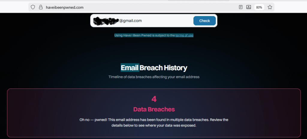 This database shows whether an email has appeared in a data breach.